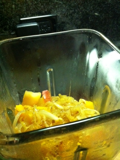 Transfer the squash, apples and caramelized onions to a blender and add water in 1/2 cup increments until the soup is the consistency you like. Add cinnamon to taste and a dash of cayenne. Reheat on the stove as needed.