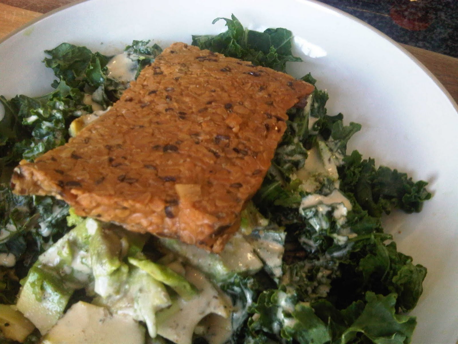 Braised Tempeh and Kale Salad with Raw Goddess Dressing