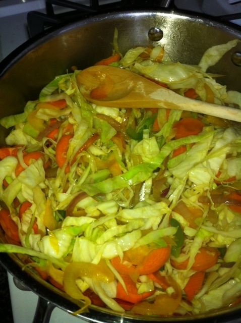 But yesterday afternoon when I opened the fridge to confirm, I saw some perfectly nice veggies just crying to be used. So I created this sweet and spicy stir-fry. I got a healthy two (!) meals, the food didn’t go to waste. Everyone wins!